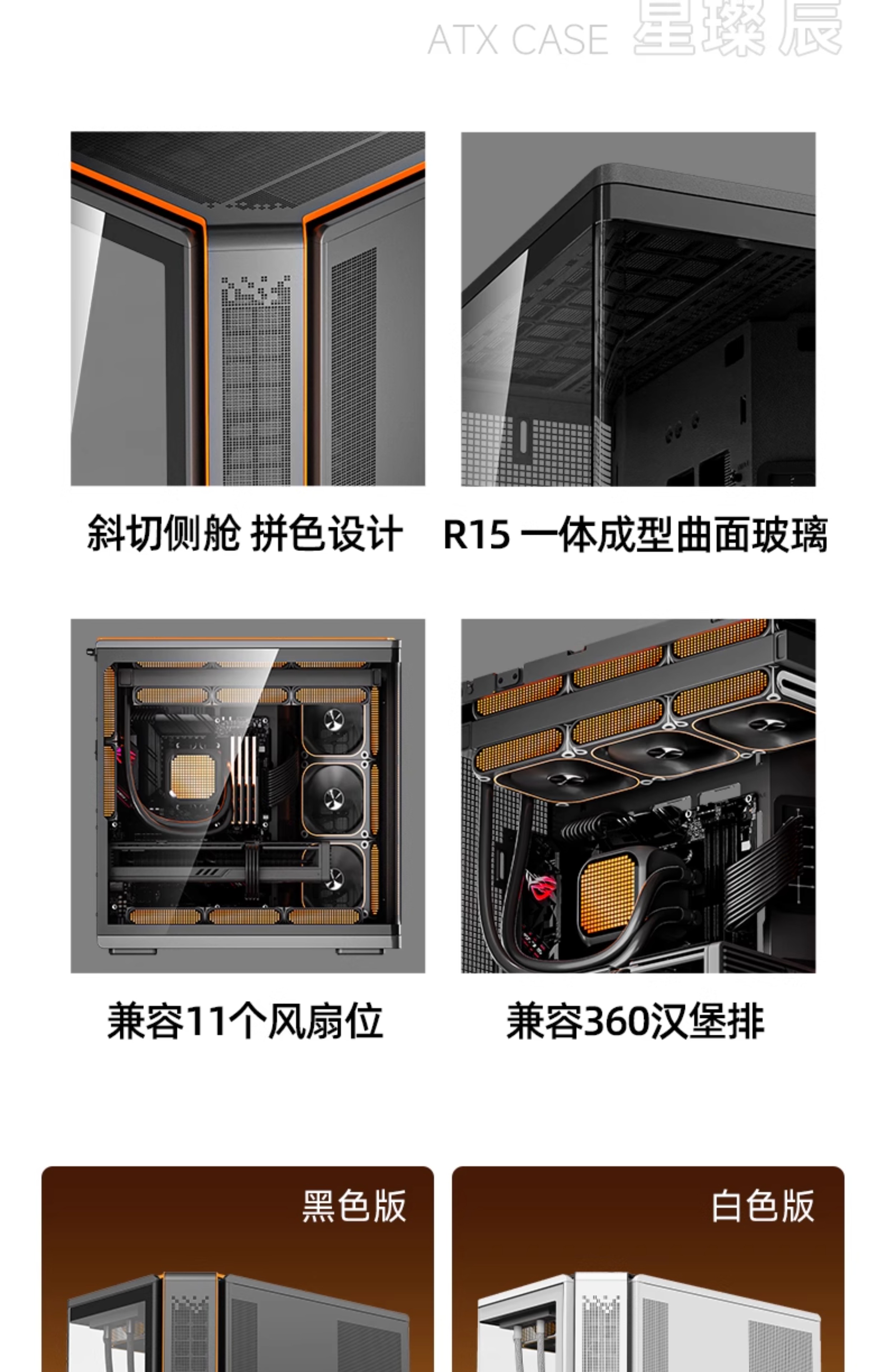 爱国者星璨辰左右分仓海景房机箱游戏电脑台式主机箱兼容汉堡排