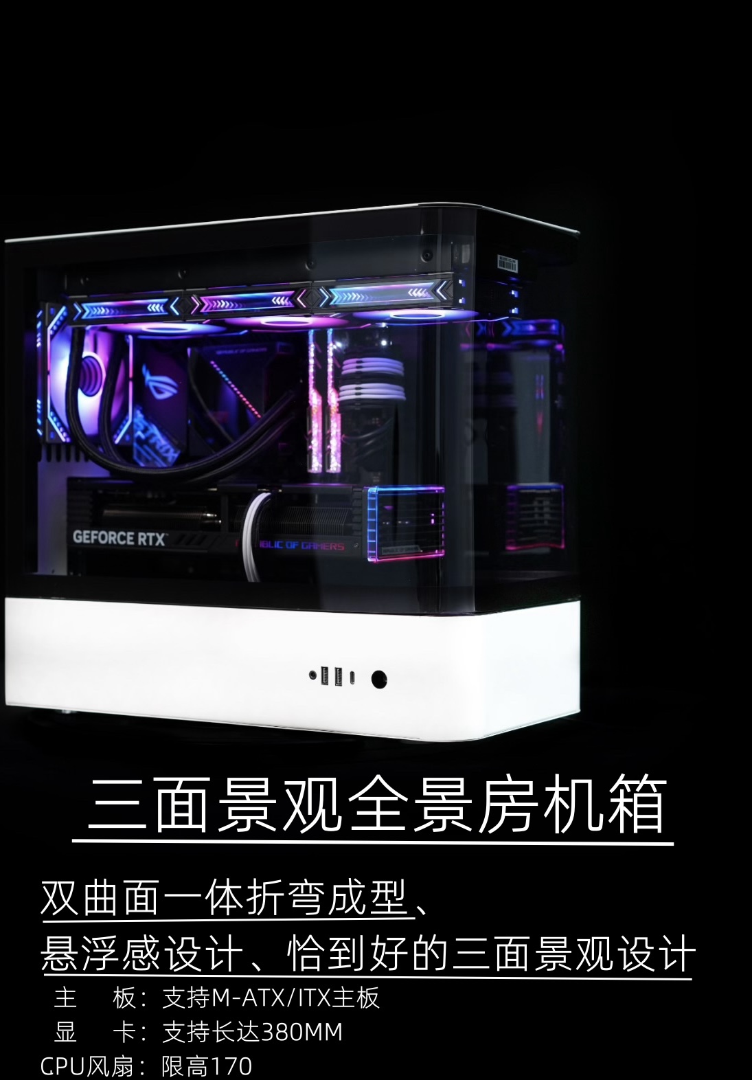 海景房机箱 一体折弯海景房机箱 HM1电脑机箱 M-ATX